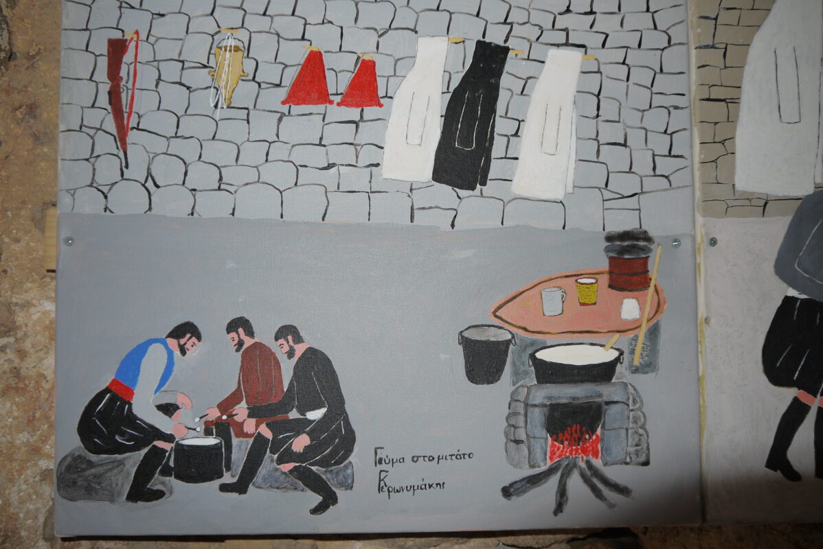 During the German occupation I worked on the matatoAnd we spent ten days heading downWe were four people like the spent times the occupation, the three-damned. SHEARING THE SHEEP 2. THE WOMEN BAG THE WOOL, THE COOK STIRS THE CAULDRON, AND THE HOST OFFERS DRINKS THE SHEPHERD MENDS HIS BOOTS ON THE MOUNTAIN