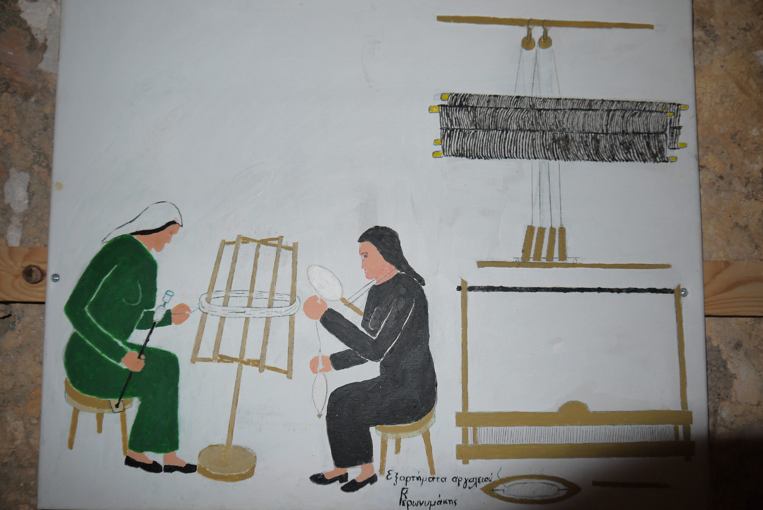 The “xástres” were two small boards, each about 0.40 x 0.40 meters, with hundreds of little teeth on each one. One board was fixed to the sides of the chair (as shown in the sketch) with the teeth facing upwards. They placed the wool on top and then pulled the other board over it to comb the wool.