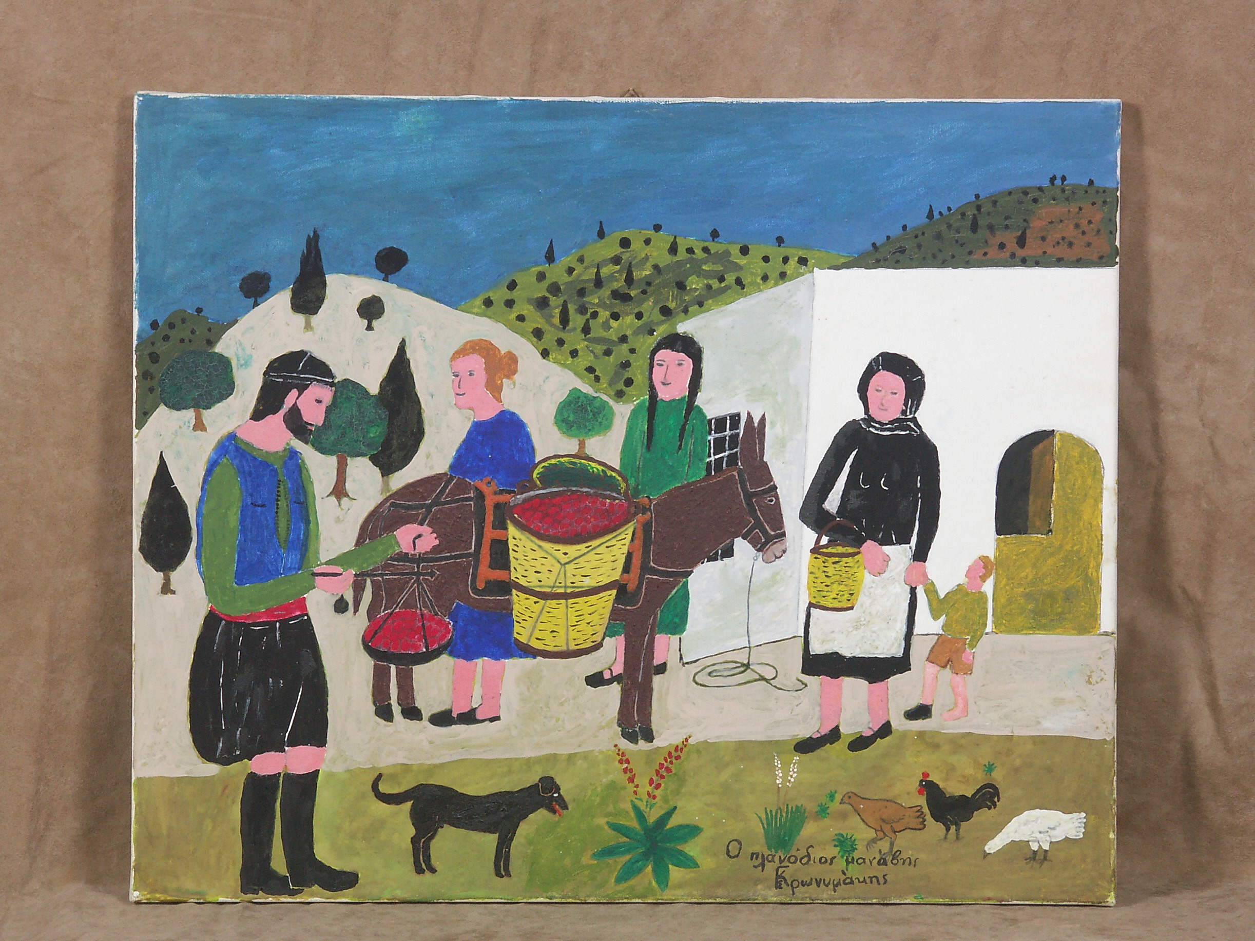 The itinerant greengrocer traveled from village to village, carrying baskets loaded on his donkey, filled with vegetables or fruits, and holding his scale, which could be a steelyard or a “fouchti” (a kind of basin used for weighing), or sometimes a spring scale. Going from village to village, he would loudly announce his goods.