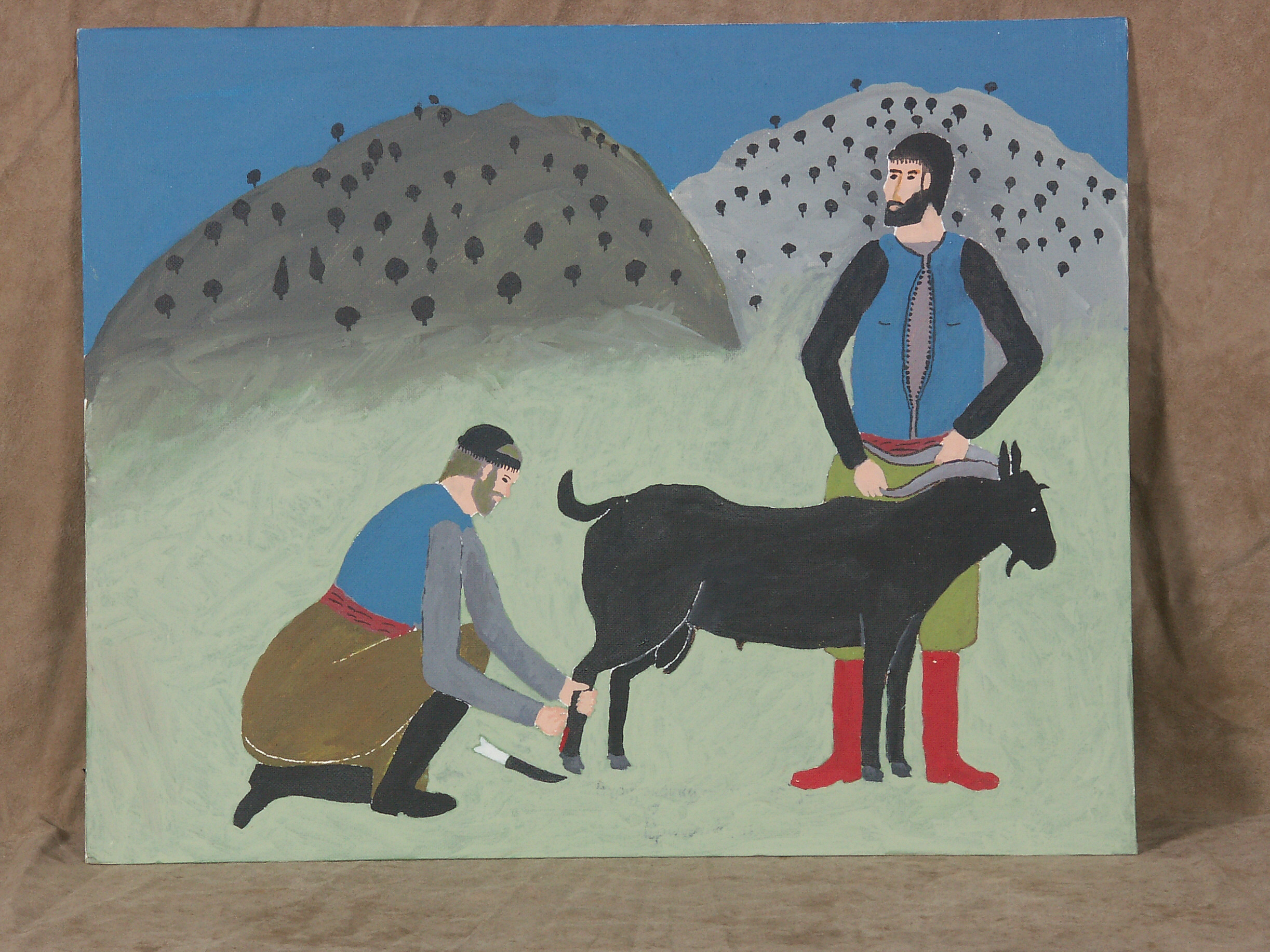 Back in the days of thieves and poverty, the “smart guys” would regularly steal baby goats. To make them seem wild so the owners wouldn’t recognize them, they would attach agrimokokkalo (wild animal bone) to the bucks. MOMENT FROM AN ABDUCTION WEIGHING WITH THE “XILOGAIDARA” (WOODEN FURNITURE)