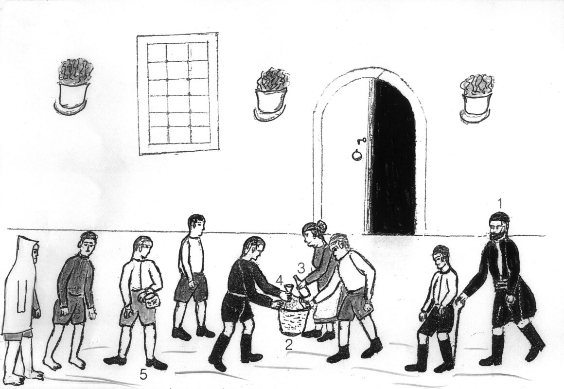 Τα παιδιά χτυπούν το σημαντήρι της Λαμπρής και περιμένουν το φιλοδώρημά τους